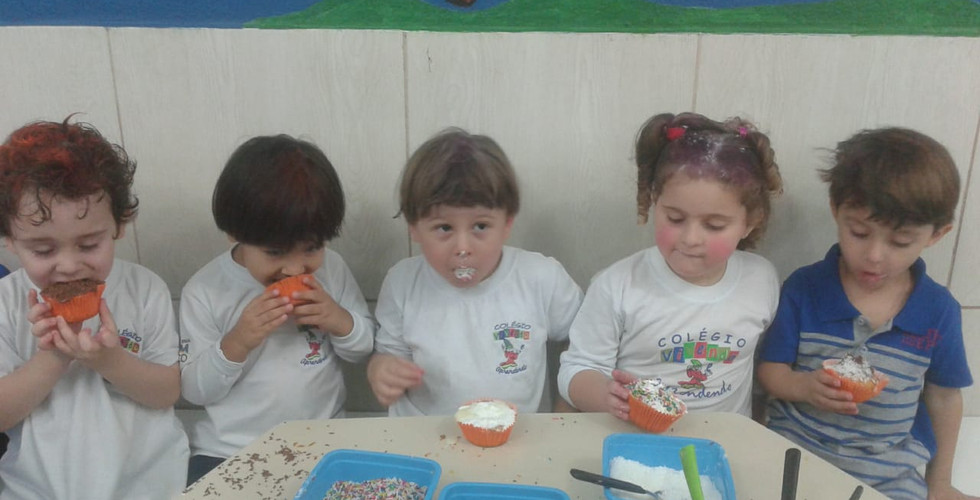 Para a Família Vivendo e Aprendendo, brincadeiras divertidas e saudáveis fazem parte do seu dia a dia. Na semana dedicada às crianças, muitas atividades foram preparadas pelas coordenadoras, professores e colaboradoras: apresentação de ginástica artística por duas ex- alunas, Giovana e Isabela; show de talentos, com mostra de desenhos, canto, receitas, música, com imitação da voz de animais, e teatro, com a “A história nada convencional de Chapeuzinho Vermelho”, tudo em inglês, pelos alunos do bilíngue; gincana, muitas brincadeiras, como boca do palhaço, jogo das garrafas, dança das cadeiras, corrida do saco, entre outras. As mesas de doces, salgados e sucos naturais estavam divinas. Havia até um “cantinho da culinária “ que as crianças amaram: cada uma decorava o seu próprio “cupcake” com vários itens deliciosos a escolher. Para encerrar, as professoras fizeram um teatrinho, muito legal e criativo, falando da importância e valorização da natureza, da solidariedade, refletindo sobre o mundo que estamos deixando para as gerações futuras. Foram horas de muita alegria, amizade, descontração que comprovaram o “Feliz Dia das Crianças”.