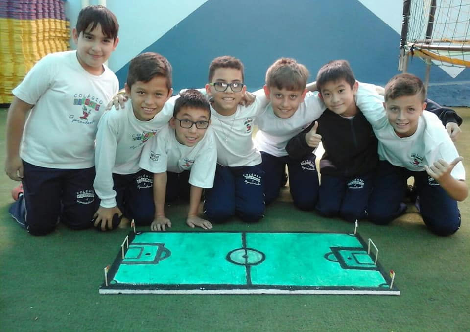 Os alunos do 5º ano A e B, orientados pela professora Maria, construíram duas maquetes representando espaços da escola. Colocaram na prática o que aprenderam nas aulas de matemática sobre escala, medidas, gráficos. Curtiram muito a atividade realizada em grupo. Expuseram os trabalhos na entrada na Unidade 2 para que as famílias pudessem apreciá-los.
