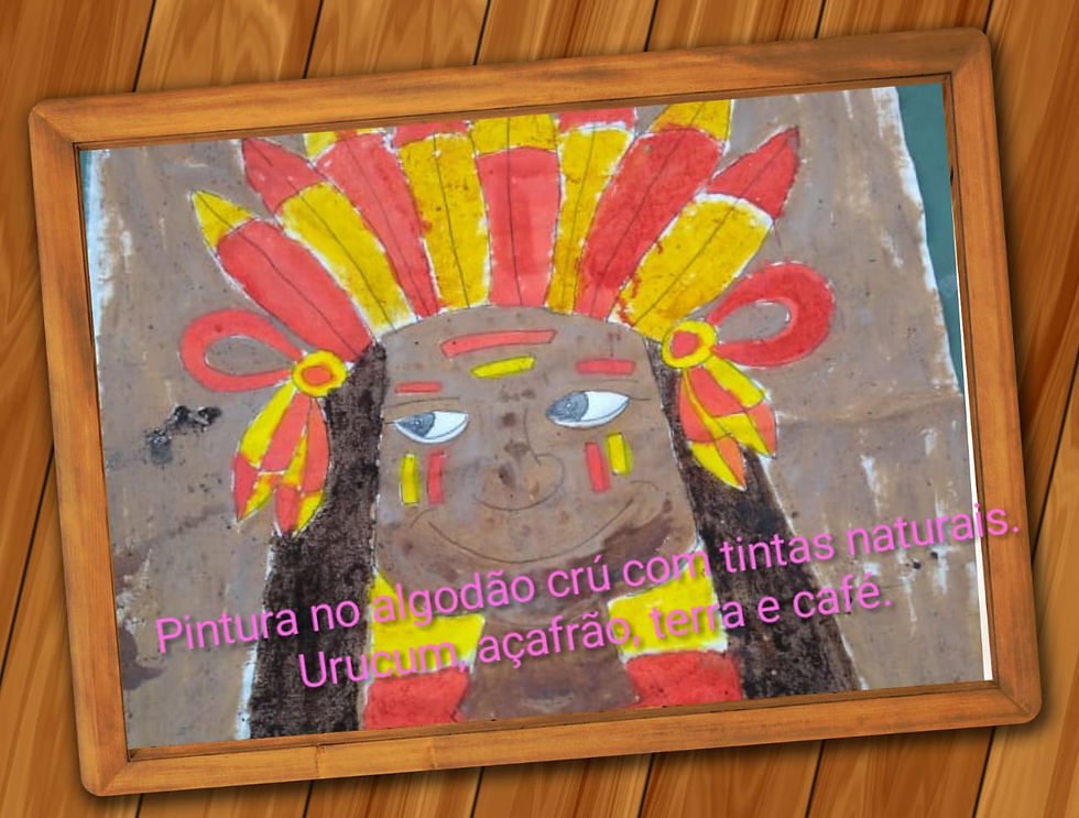 No Dia do Índio, 19 de abril, os alunos do 1º ano da Professora Suelen realizaram uma atividade de valorização da cultura indígena brasileira com a utilização de produtos naturais. As crianças fizeram pinturas no algodão crú com tintas feitas de urucum, açafrão, terra e café.